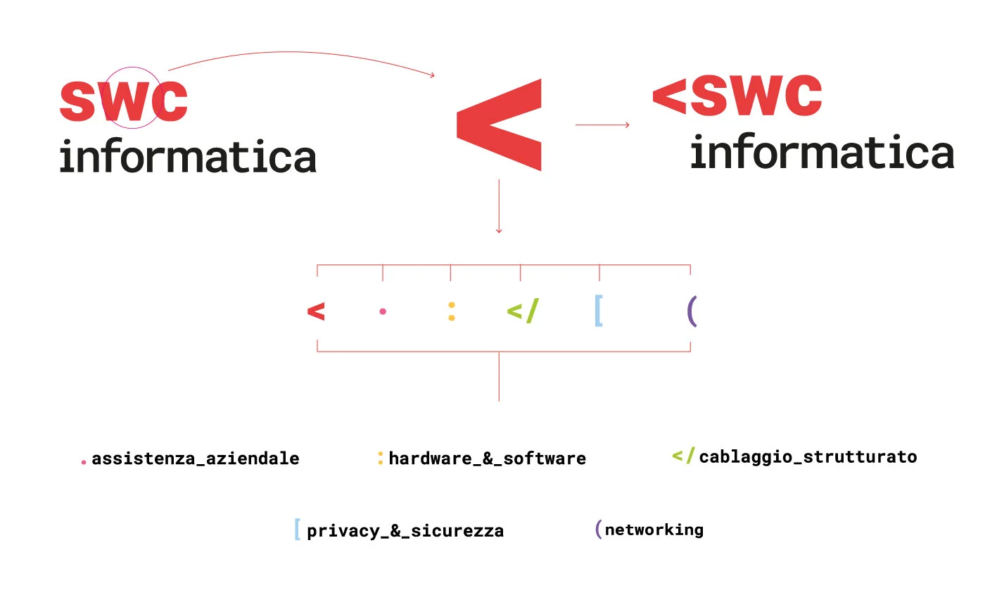Il progetto di rebranding per SWC Informatica è iniziato con un brief chiaro: il cliente desiderava aggiornare il proprio logo, realizzato in modo amatoriale, che appariva datato e poco accattivante soprattutto per la scelta della font.